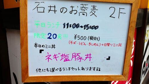 日替わりランチセット (そばorうどんorきしめん+ミニ丼)¥550京成の千葉中央駅の近くにあるお店。 ココイチのあるビルの2階。カウンター席もテーブル席も両方あり。 帰りにレジで会計。平日ランチ限定20食のセットを注文。 12:00より少し前の時間だったけ…