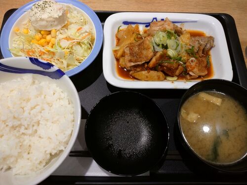 鶏のじゃがバター炒め定食ポテサラセット ¥750 おとといから販売開始の新メニュー。鶏もも肉とじゃがいもを、にんにく醤油ダレとバターで炒めたもの。提供されると、にんにくの香りが漂ってくる。味ももちろんにんにくなのだが、それほど強烈でもない。鶏肉…
