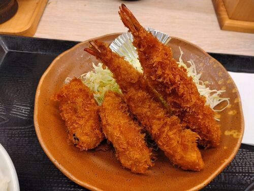 秋の海鮮フライ定食 ¥759 おとといから販売開始の期間限定メニュー。 かつやの期間限定メニューにしては普通だなと思ったが、でもカキフライが2個とエビフライが2本だけで、カツは入ってないんですよね。とんかつ専門店なのに。やっぱり普通じゃなかった?!…
