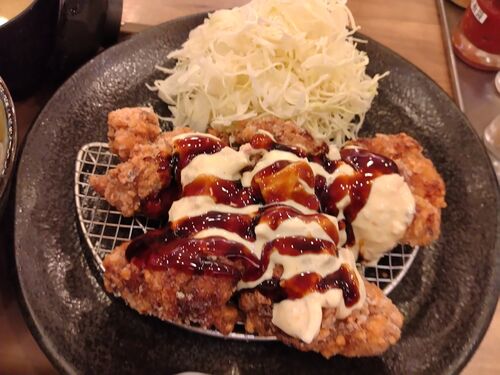 南蛮すたみな唐揚げ定食(並) ¥880 伝説のすた丼屋では、先週グランドメニューを改定。 そのときに新たに加わった定食メニューのひとつにしてみた。 唐揚げメニューも値上げになってますね。なので鬼盛りはやめておいた。 唐揚げに甘酢っぽいタレと、タルタ…