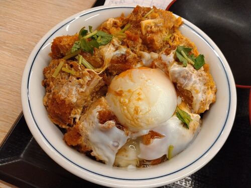 特カツ丼 ¥836 とん汁(大) ¥220 計¥1056 先週から販売されている期間限定メニュー「ベーコンエッグソースカツ丼」を食べようと思って、かつやに行ったらまさかの売り切れ。 というわけで、急遽頼んだのが、こちらのメニュー。 80gのロースが使われ、これは…
